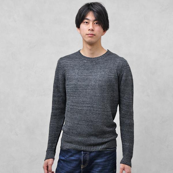 Amazon グラン サッソ ニット セーター クルーネック 長袖 メンズ ウール 100 織柄 グレー 並行輸入品 セーター 通販